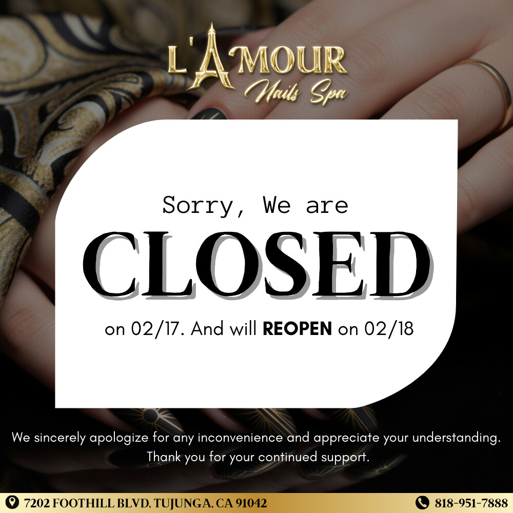 We would like to say Thank you for choosing L'Amour Nails Spa, where you will receive one of the best service and peace of mind about your health and safety. We employ only experienced nail technicians and cosmetologist licensed by the State Board of California.